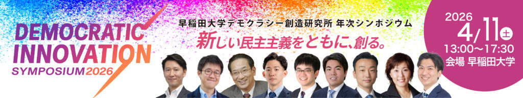 早稲田大学デモクラシー創造研究所の年次シンポジウム”Democratic Innovation Syposium2026″を2026年2月7日(土)4月11日(土)に早稲田大学にて開催します(共催:一般社団法人Maniken /一般社団法人未来政経研究所)。研究所開所以来初めてのシンポジウムとなります。皆さま是非ご参加ください。